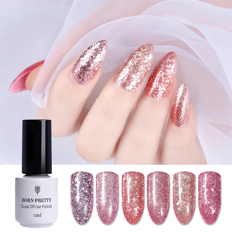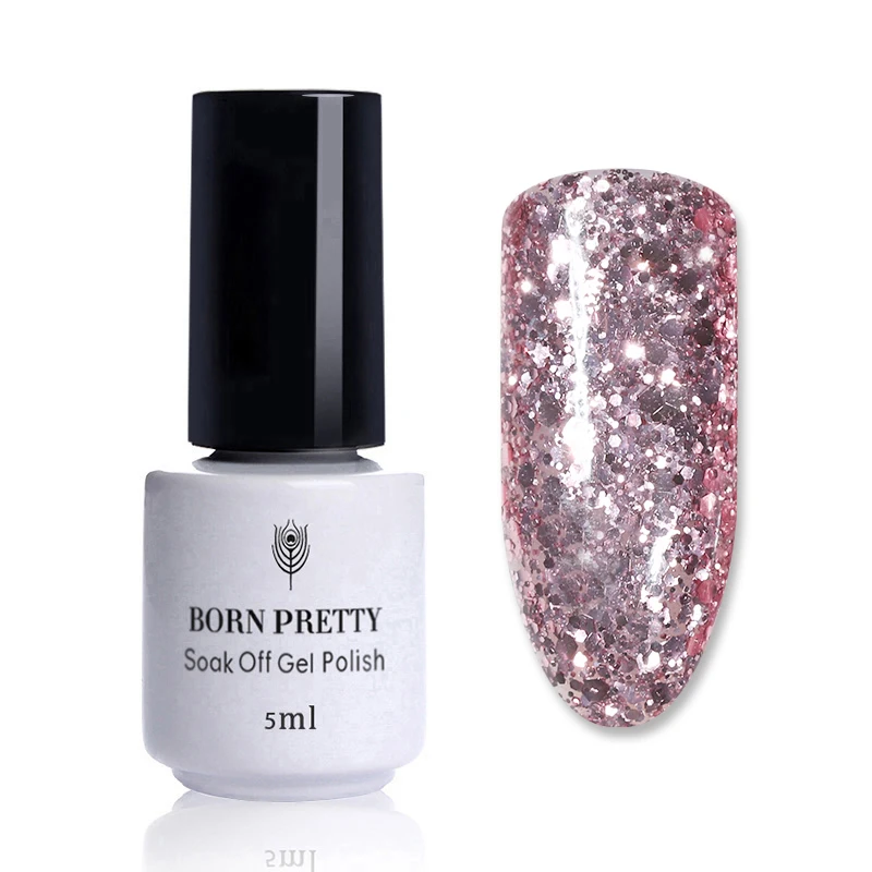 Special Price of BORN PRETTY 1 Bottle 5ml Rose Gold Gel Glitter Sequins Shining Soak Off UV Gel Nail Art Gel Polish