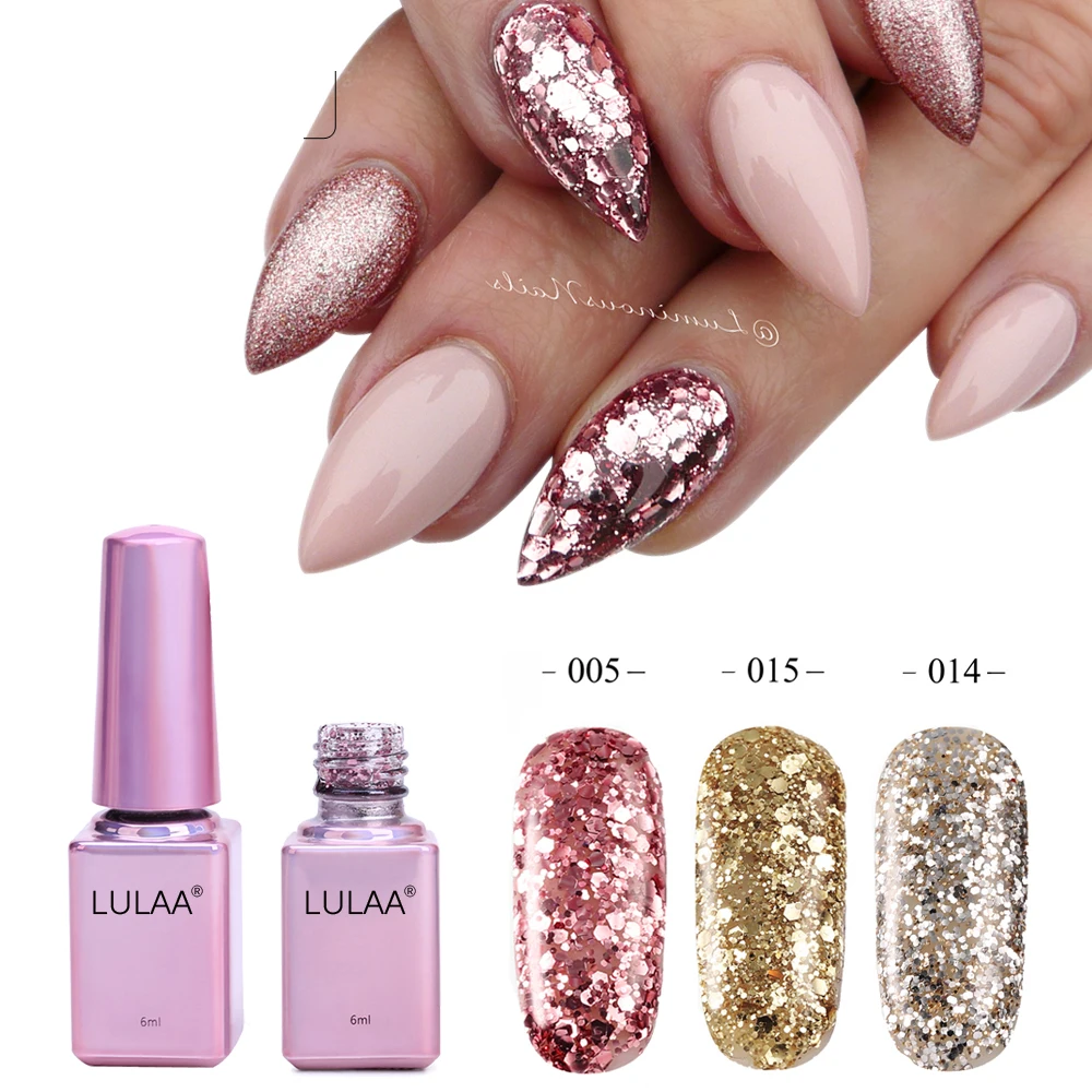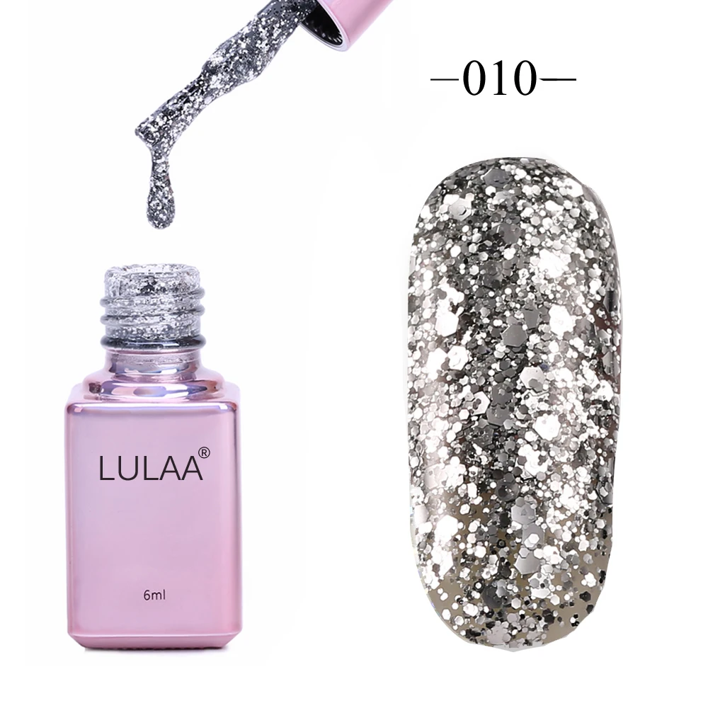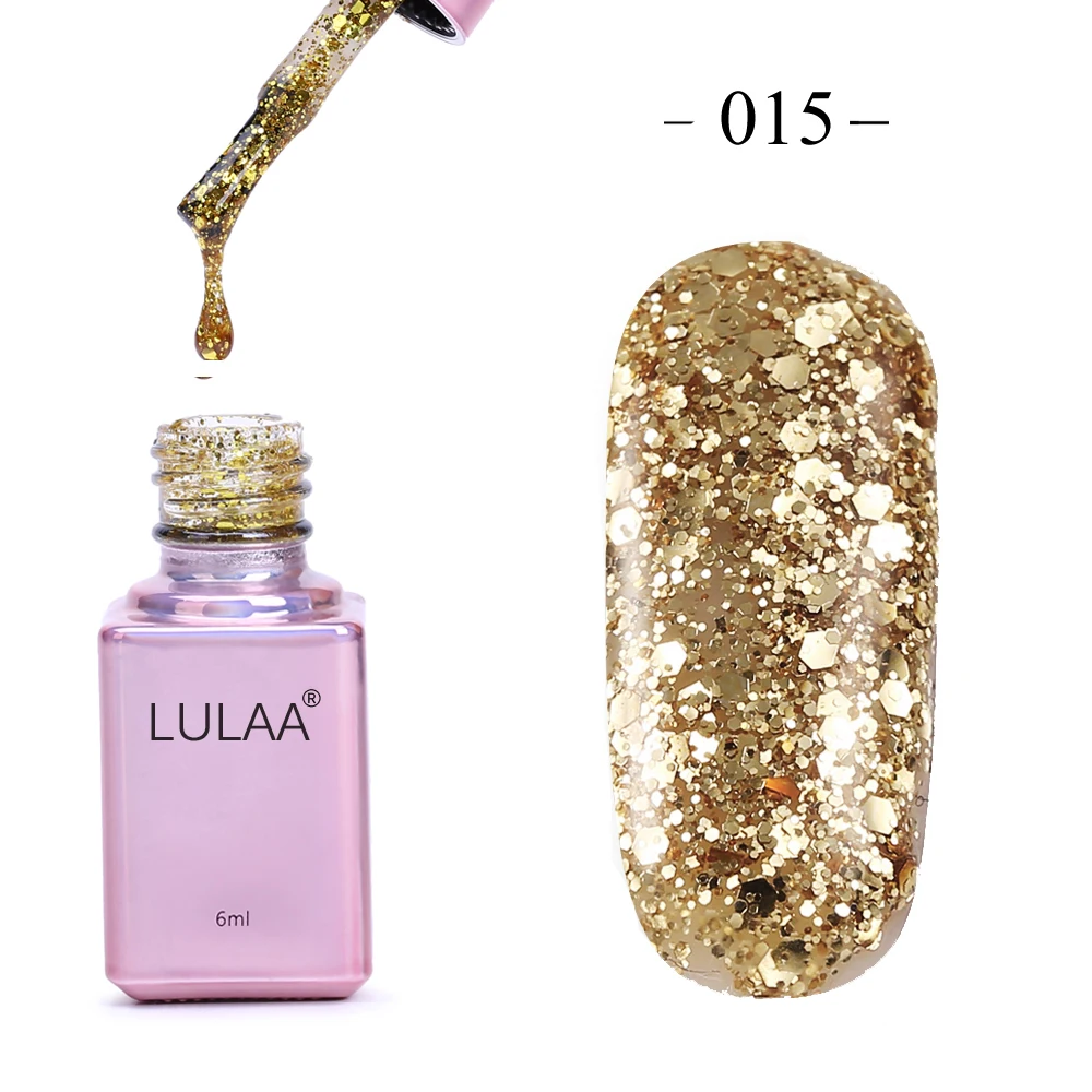 Related Product for LULAA Professional Diamond Glitter UV Nail Gel Polish 6ml Soak Off Sequins Gel Long-lasting Bling N